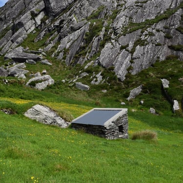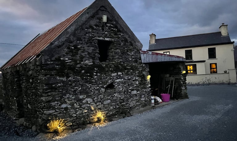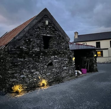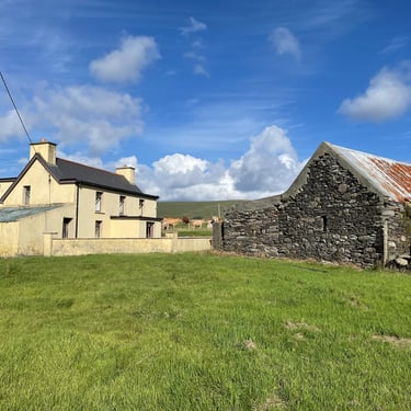 Typical Irish vernacular home with original features and stone outbuildings with private access to a coastal landscape location and incredible sea views.
