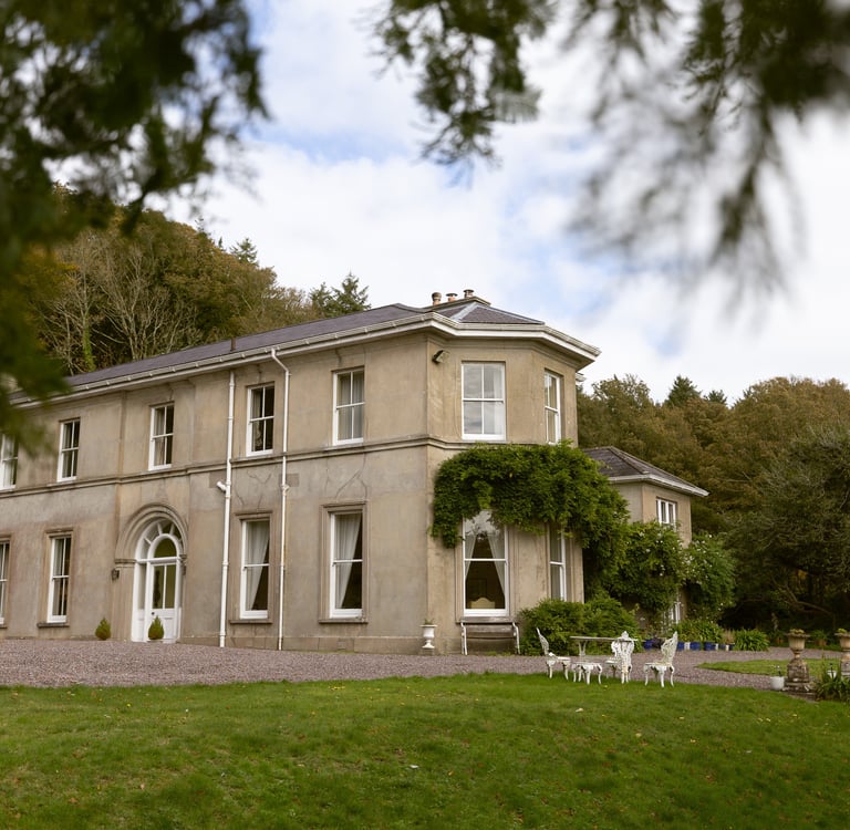 A restored detached six-bay two-storey former fishing lodge, built c. 1810, incorporating fabric of earlier building, and with later Victorian additions. The vast grounds also have a vine house and tree house. Good parking and space for large private and secluded production use.