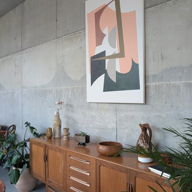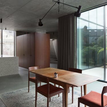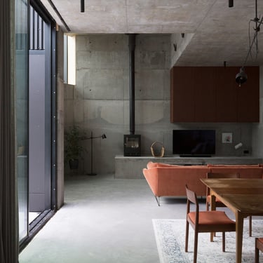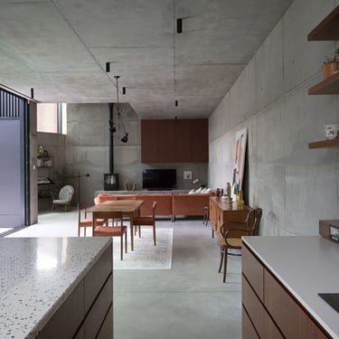 An exposed concrete canvas with high ceilings and an abundance of natural light, featuring a palette of terrazzo, warm sapele timber custom joinery and mid century furniture.