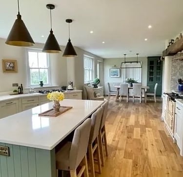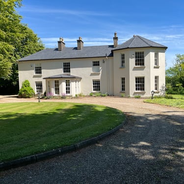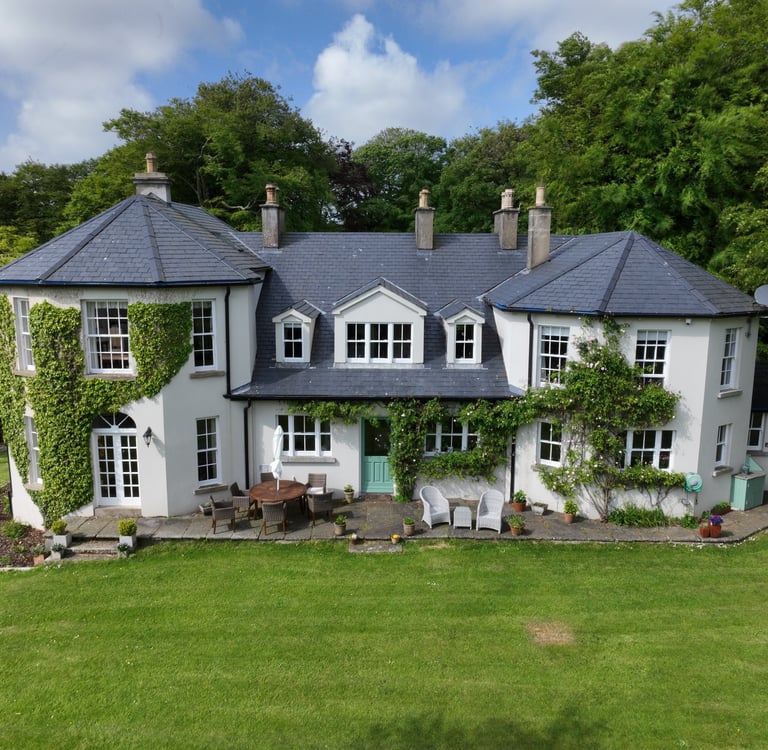 This grand country home in Wexford sits quietly in the green countryside, with traditional cottage interiors that bring warmth and comfort to its spacious, timeless setting. On-site parking. Suitable for Large Productions