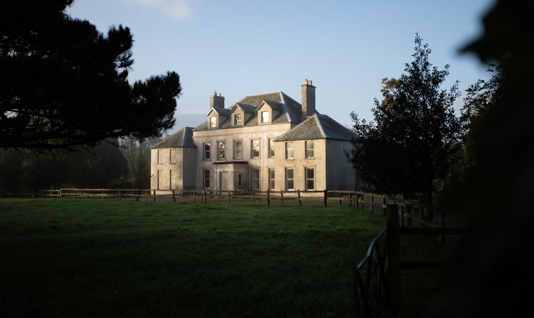 A period manor house on an estate with a farm, out buildings, workers sheds, stables, fernery, gardens, fields, a lake and surrounded by incredible views of the surrounding hills