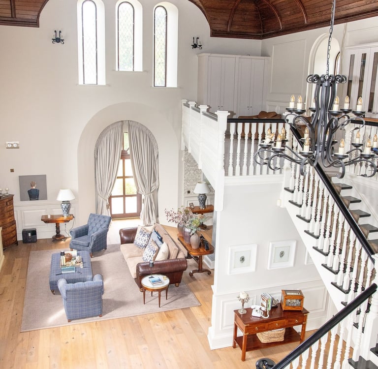 The original building started life as a Church built in 1843,which was then de-consecrated and closed around 1998 before being converted into a home. This 6,000 sq. ft. home sits on 4 acres of picturesque land and offers a stunning blend of historic architecture and contemporary design. The building retains many of its original features, including soaring vaulted ceilings, leaded windows and intricate stonework.