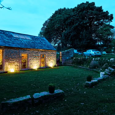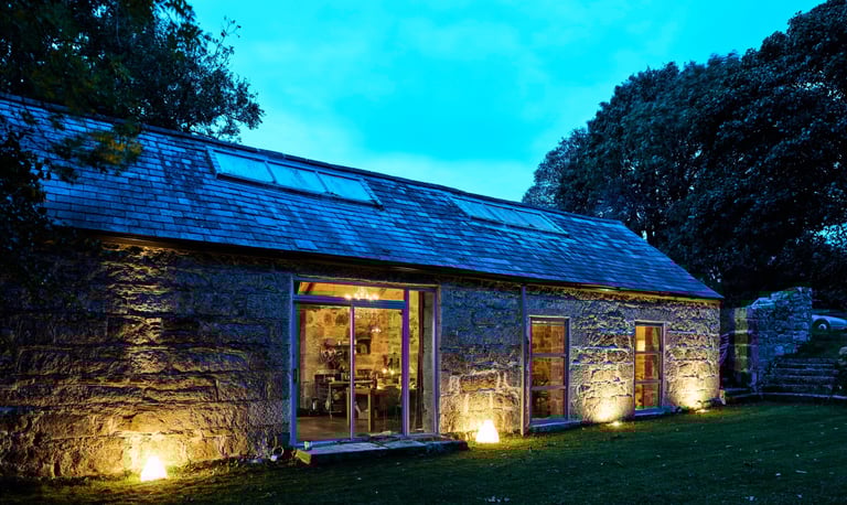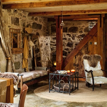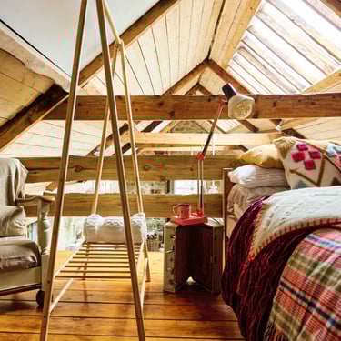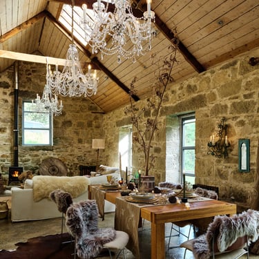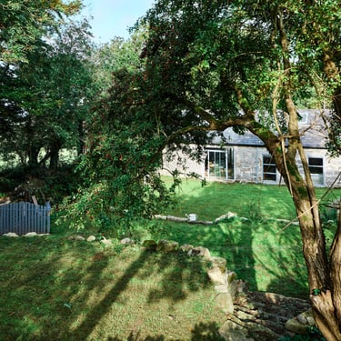 A stunning woodland home with cleverly framed views of the surrounding landscape paired with eclectic, warm interiors.