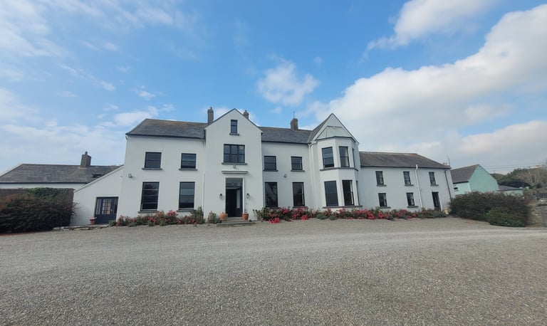The Heritage Estate is nestled in the heart of Annestown village, on the Copper Coast UNESCO Global Geopark. Mainly built in the 1800s the house has breathtaking views over the Atlantic Ocean and across the county of Waterford. The main house offers 750sqm of space and there are 10 acres of lawns and woodland with views and access down to the beach. The courtyards, stables and function areas are all renovated and include an old barn which has been remodelled to become the fabulous “Nellie’s Bar”. Suitable for large productions and on-site accommodation (separate building)