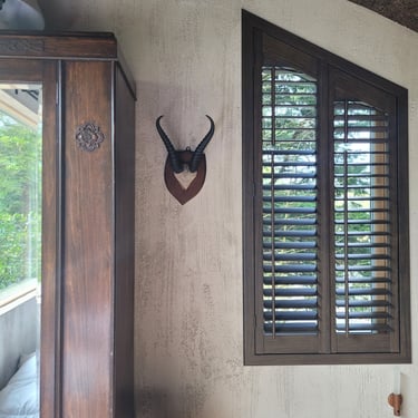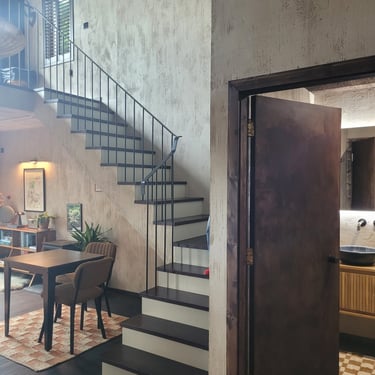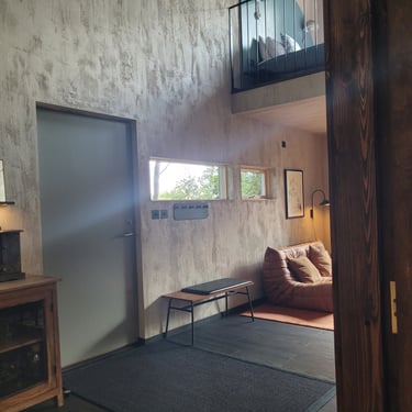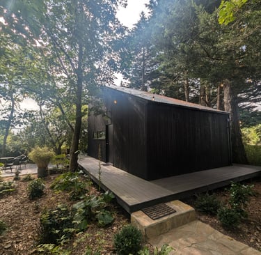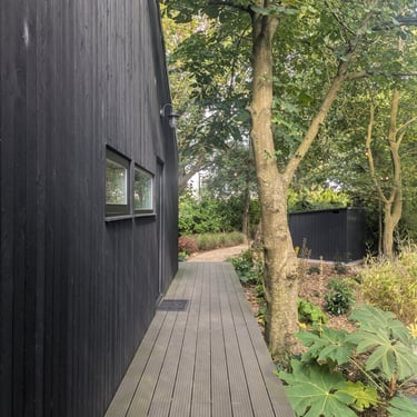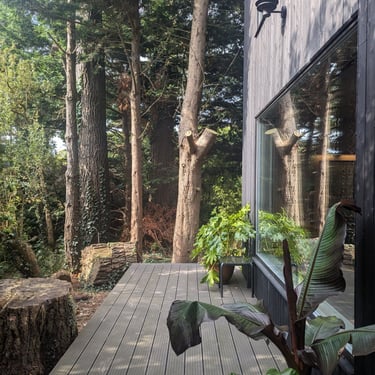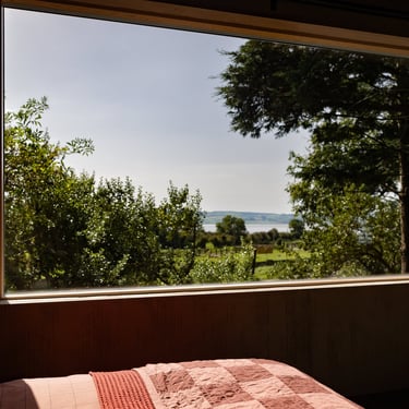 A stunning woodland home with cleverly framed views of the surrounding landscape paired with eclectic, warm interiors.