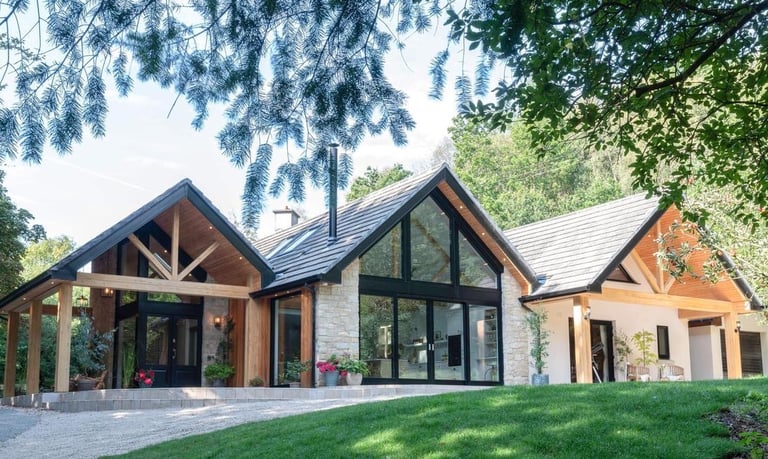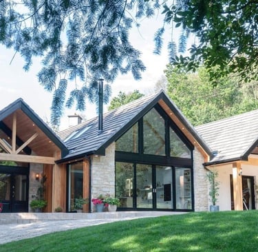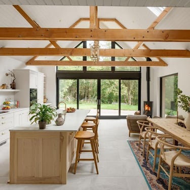 A stunning woodland home with cleverly framed views of the surrounding landscape and neutral interiors perfect for shoots.. The location is private, with parking and additional parking available for large productions.